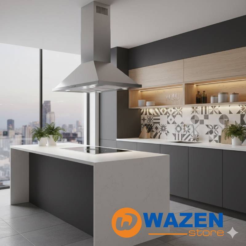 - لو المطبخ مفتوح، اختار شفاط هرمي بفلتر كربون.
