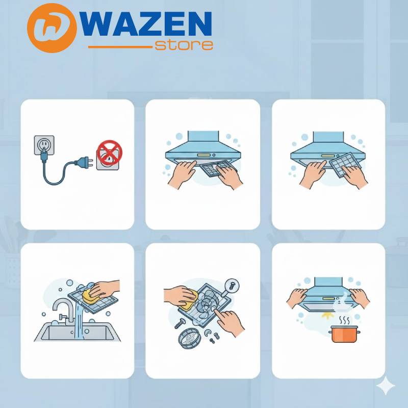 بعد ما تنشف كل حاجة، رجّع الفلاتر مكانها وشغل الشفاط.