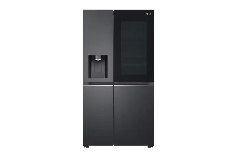 - تأتي ثلاجة إل جي 4 أبواب 635 لتر بتصميم أنيق باللون الأسود المطفي، لتمنح المطبخ لمسة من الفخامة.