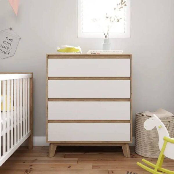 | المميزات | – تصميم عصري بسيط يناسب غرف النوم والمعيشة – أدراج واسعة لتخزين الملابس أو الأدوات المختلفة – أقدام خشبية مرتفعة تسهل تنظيف الأرضية أسفلها – تشطيب ناعم مقاوم للخدوش وسهل التنظيف |