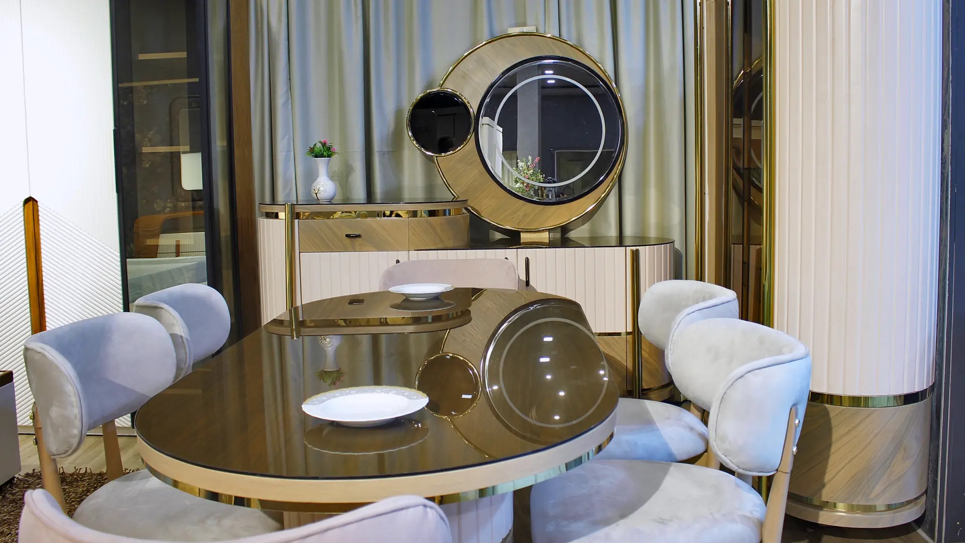 The Jolie Dining Room Set stands out due to its combination of high-quality materials, meticulous craftsmanship, and elegant design. Blending luxury with practicality, every element of the set is crafted to offer comfort, durability, and timeless beauty. From the strong red beech wood frame to the detailed Turkish accessories, Jolie creates a dining atmosphere that is both functional and aesthetically pleasing.