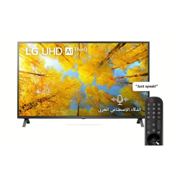 The LG 55-inch smart TV with built-in receiver is one of the best types of TVs in Egypt, which is characterized by an elegant streamlined design that attracts you to see the purest images. It is available through Wazen Store with the best prices for LG screens in Egypt and the best shipping and after-sales services. The 55UQ75006LG series is distinguished by LG With ThinQ AI Ultra HD display technology, which delivers exceptional picture quality and unparalleled clarity.